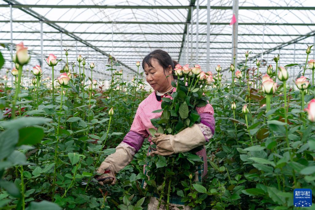 一名花农在云天化晋宁花卉产业现代化示范园内采摘鲜花(7月12日摄)。新华社记者 陈欣波 摄