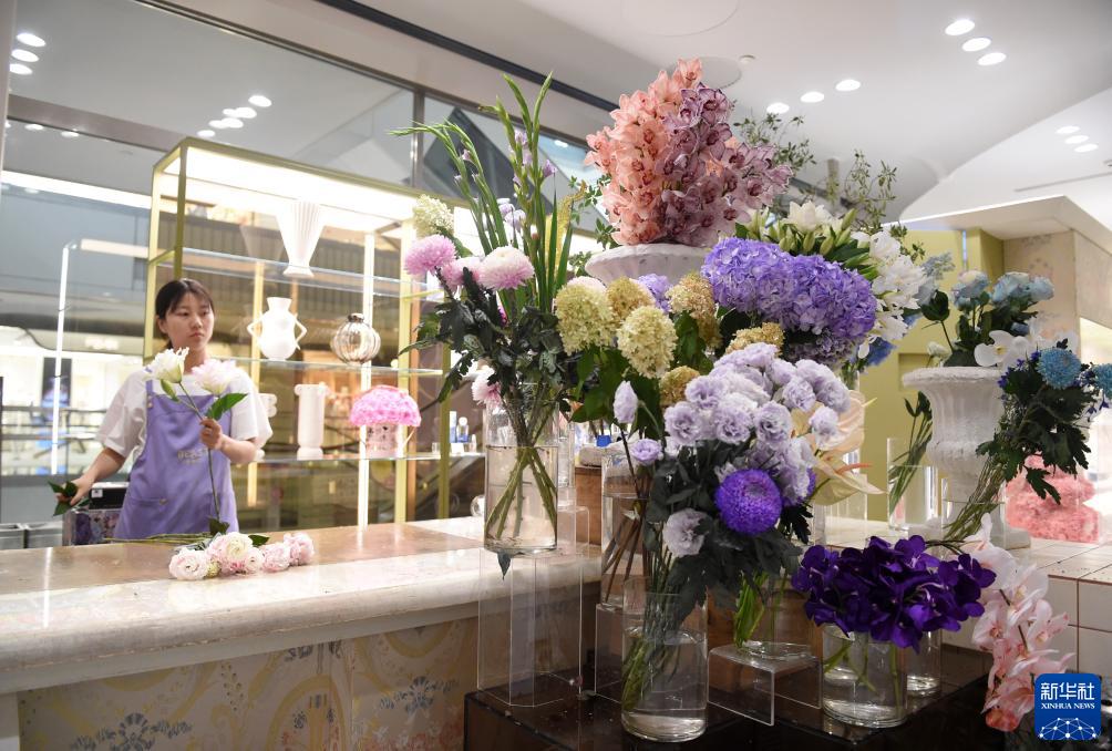 在北京市朝阳区一家出售云南鲜花的花店,店员在打理鲜花(7月29日摄)。新华社记者 罗晓光 摄
