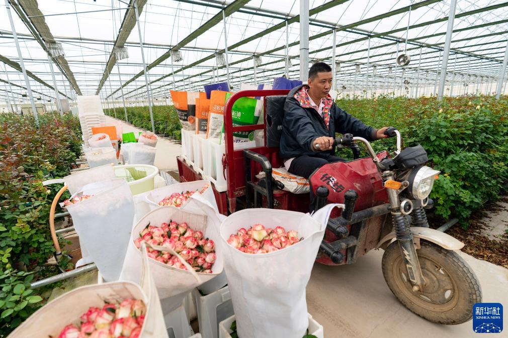一名花农驾驶三轮摩托车在云天化晋宁花卉产业现代化示范园内运输鲜花(7月12日摄)。新华社记者 陈欣波 摄