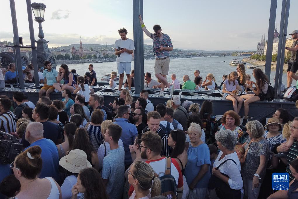 8月4日,在匈牙利布达佩斯,人们走上重新开放的链子桥。