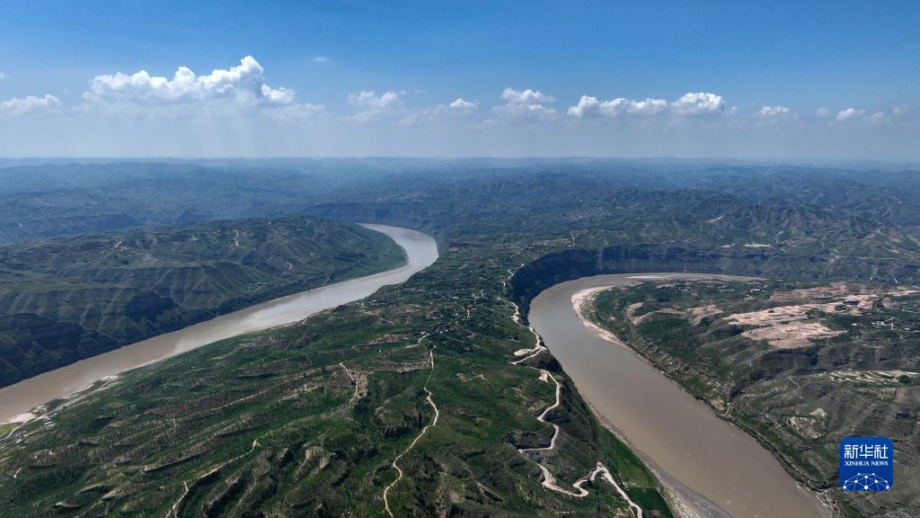 在山西省石楼县辛关镇拍摄的黄河奇湾(8月3日摄,无人机照片)。