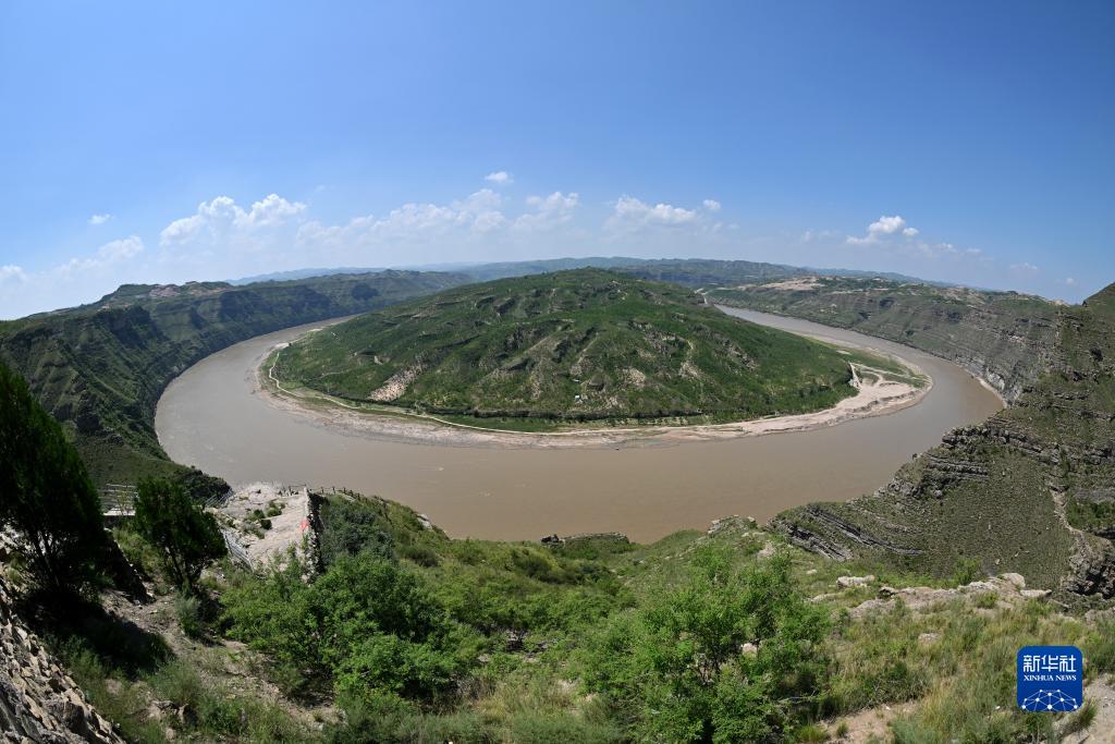 在山西省石楼县辛关镇拍摄的黄河奇湾(8月3日摄)。