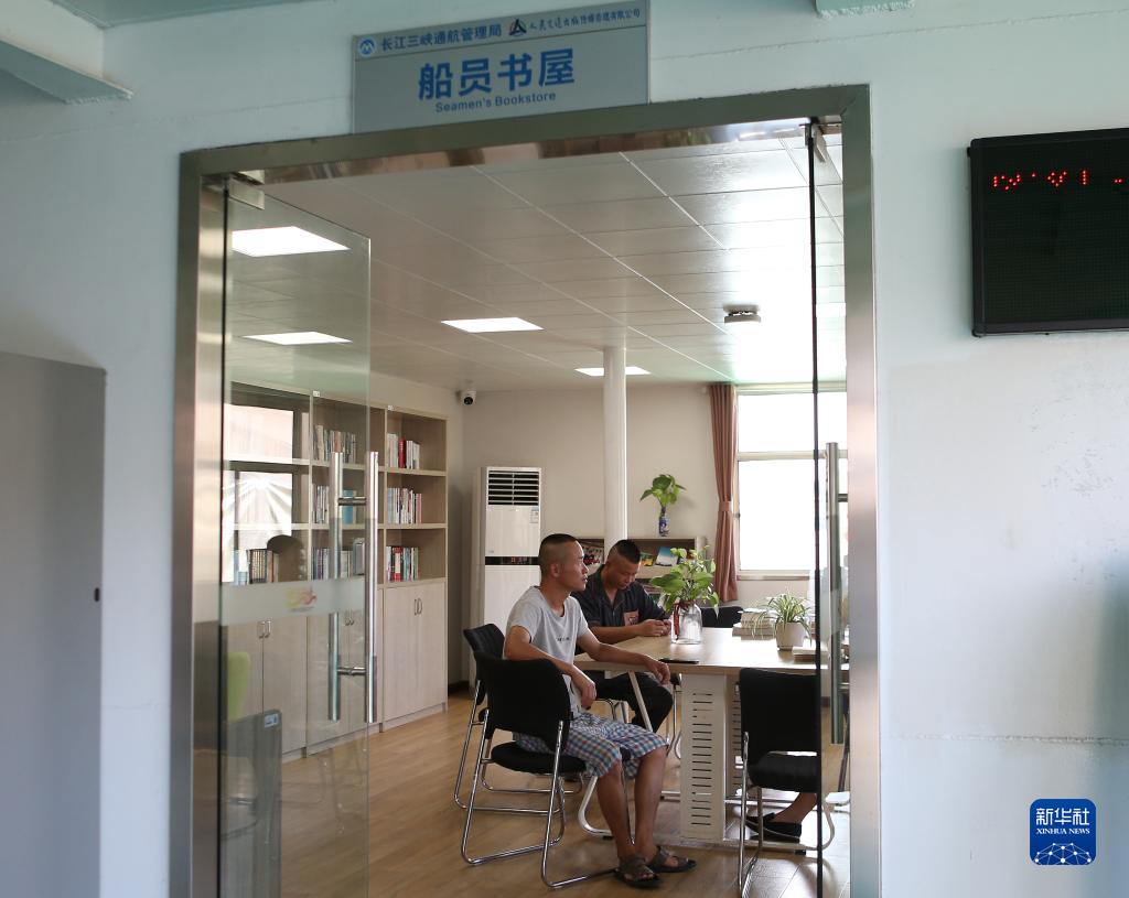 8月4日,船员在综合服务区的“船员书屋”聊天。