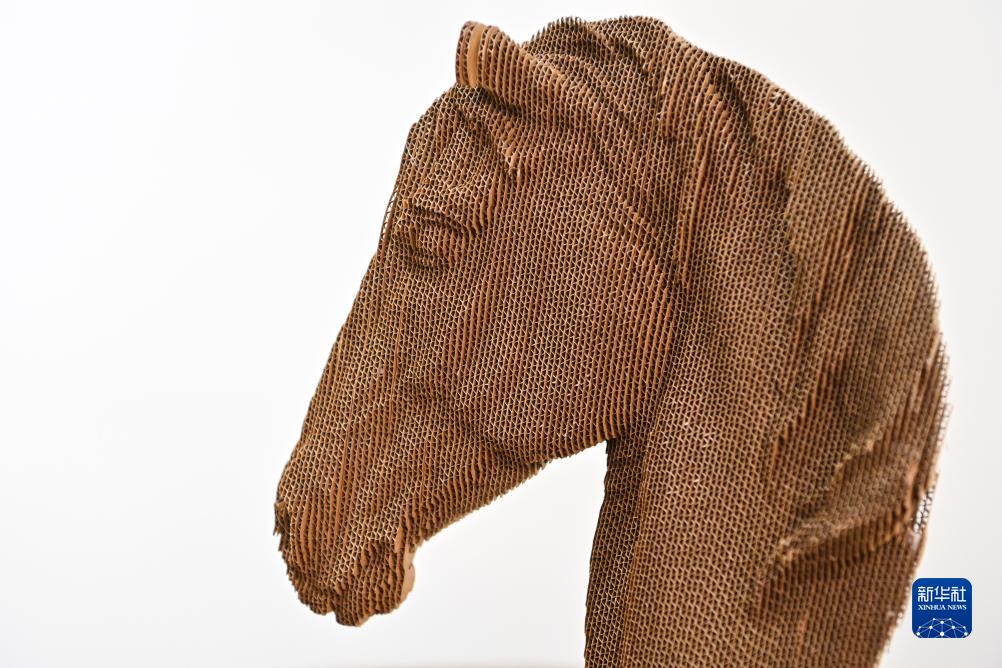 这是王帅栋的瓦楞纸作品(8月1日摄)。