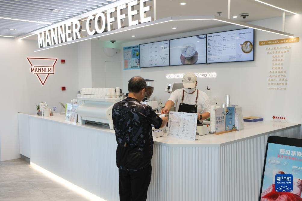 8月4日,顾客在徐汇滨江党群服务中心的“咖啡公益空间”购买咖啡。