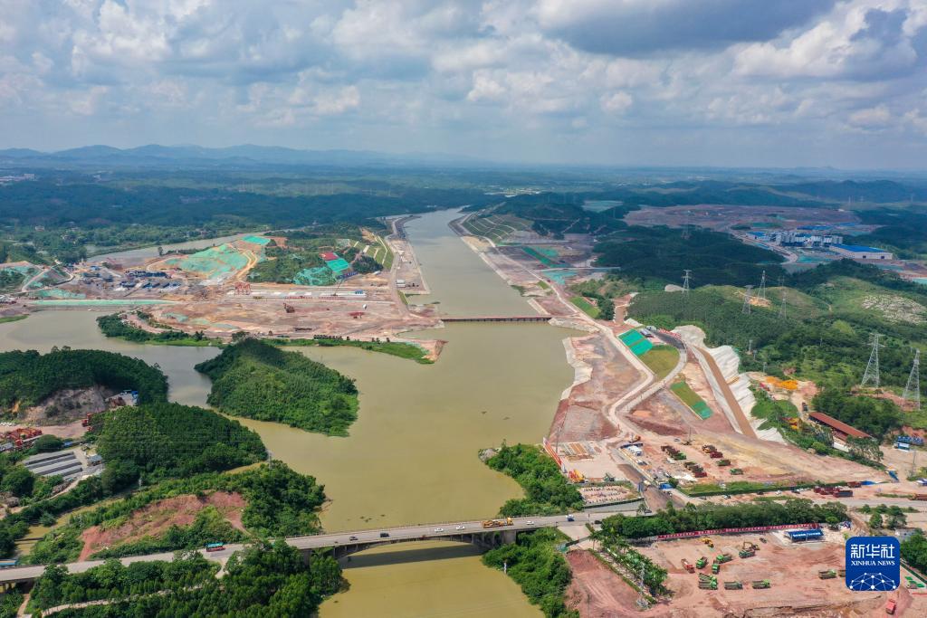 这是7月23日拍摄的建设中的平陆运河青年枢纽(无人机照片)。