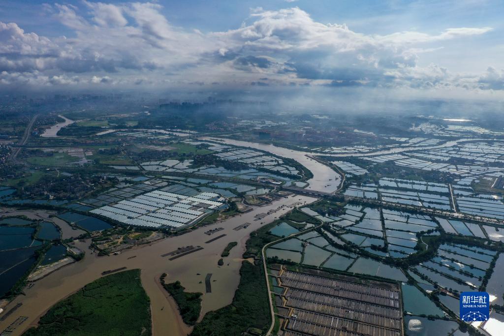 这是7月23日拍摄的茅尾海附近的水产养殖区(无人机照片)。