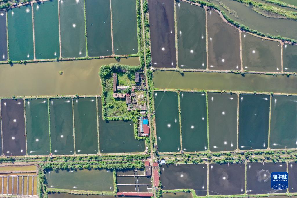 这是7月23日拍摄的茅尾海附近的水产养殖区(无人机照片)。