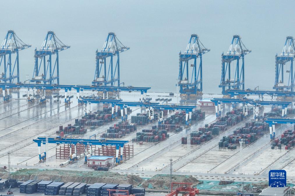这是7月22日拍摄的北部湾港钦州自动化集装箱码头(无人机照片)。