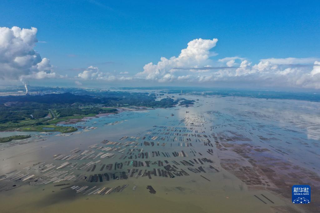 这是7月23日拍摄的茅尾海附近的水产养殖区(无人机照片)。
