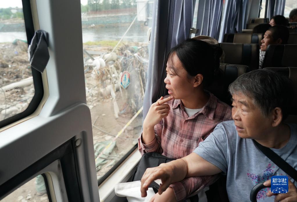 8月5日,北京市房山区青龙湖镇口头村村民乘坐大巴从安置点前往口头村。