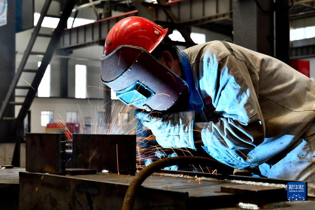 8月5日,在位于日照市东港区的山东力山特智能科技有限公司,工作人员在焊接智能行车设备。