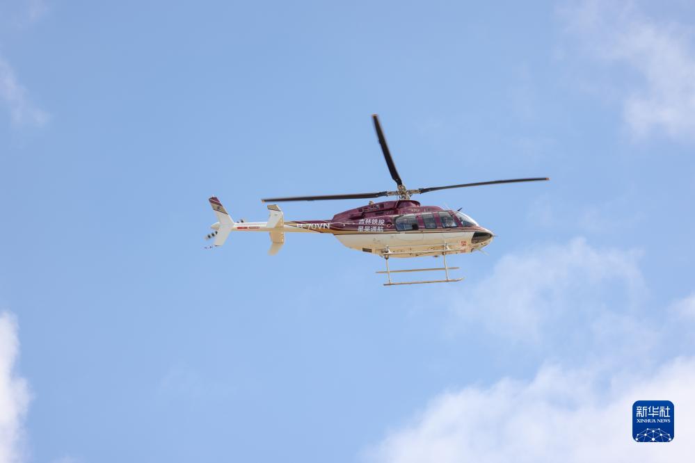 8月5日,搜救队员利用直升机在吉林省舒兰市七里乡开展救援工作。