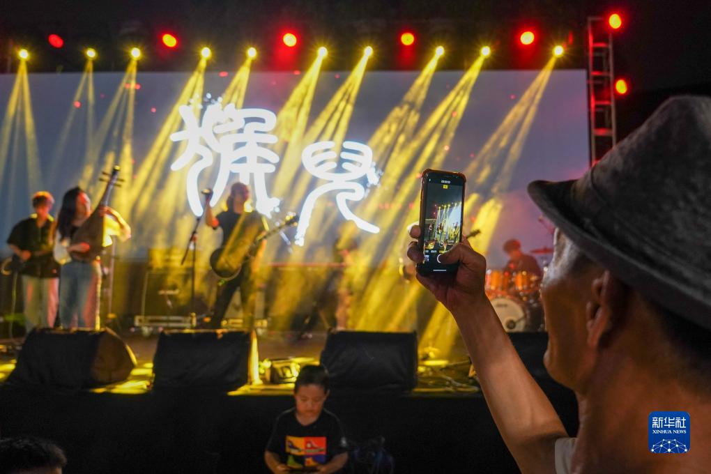 观众在苏州市树山村“村潮澎湃”音乐节活动现场观看表演(7月14日摄)。