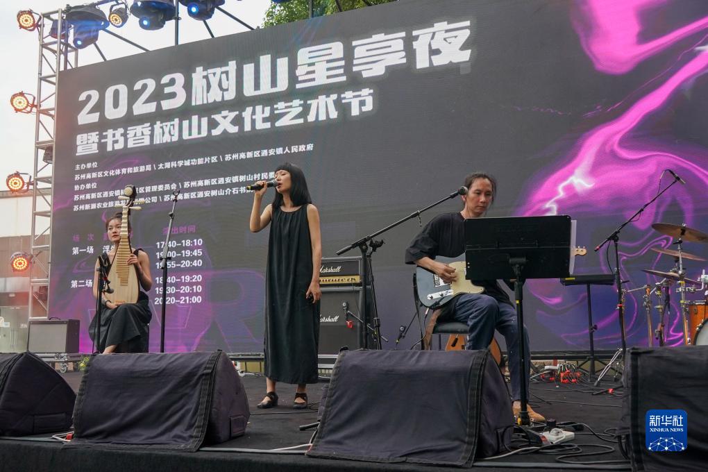 歌手在苏州市树山村“村潮澎湃”音乐节活动现场进行表演(7月14日摄)。