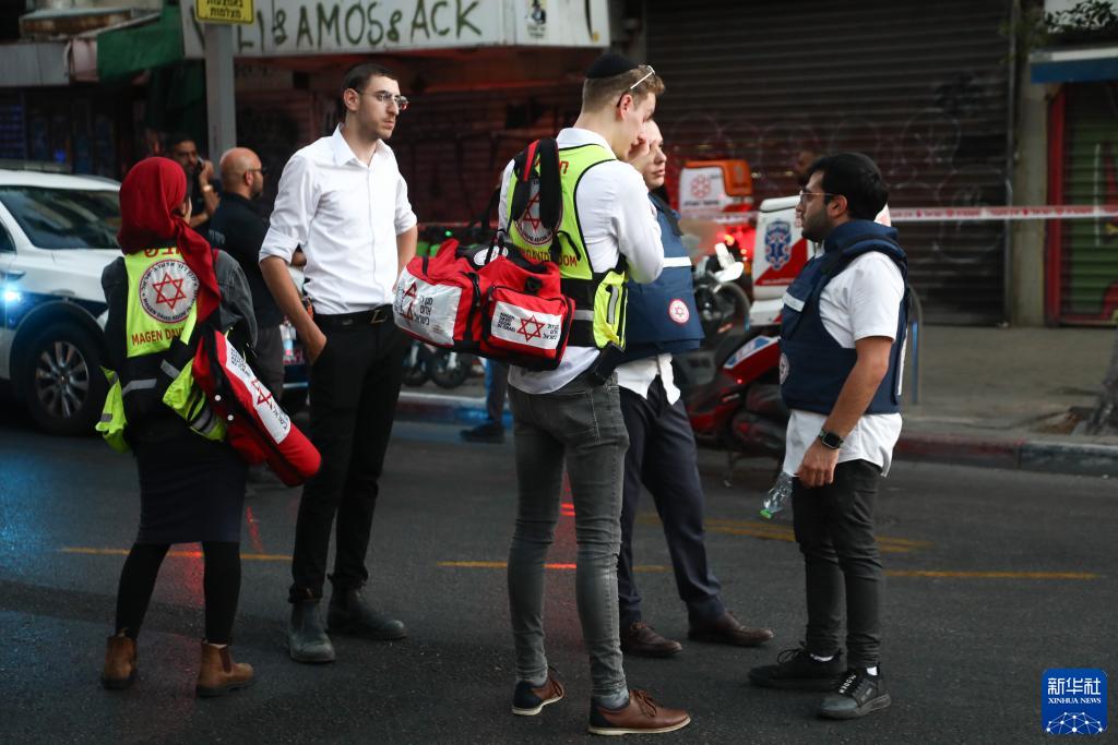 8月5日,在以色列特拉维夫,急救人员在枪击现场工作。