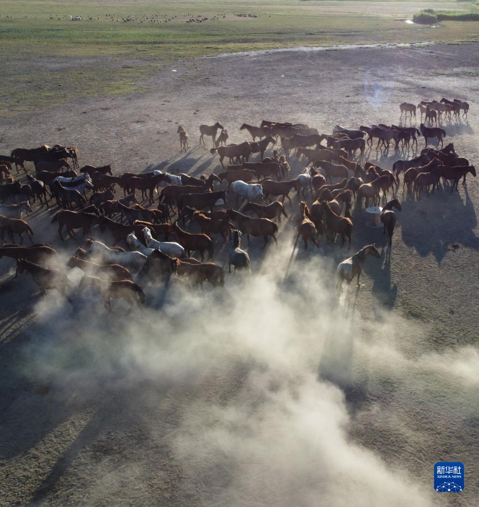 这是8月5日在土耳其开塞利省苏丹里迪国家公园航拍的马群(无人机照片)。
