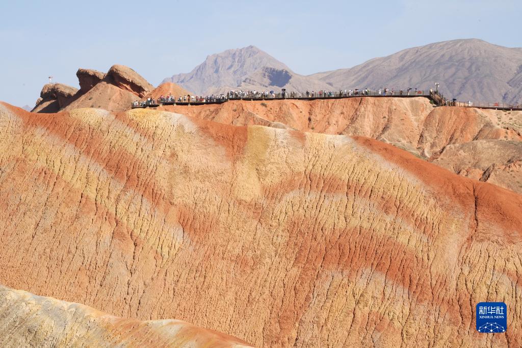 位于甘肃省张掖市境内的张掖七彩丹霞景区属张掖国家地质公园,是罕见的丹霞地貌与彩色丘陵景观复合区。进入8月以来,七彩丹霞景区日均游客数量突破3.5万人次。