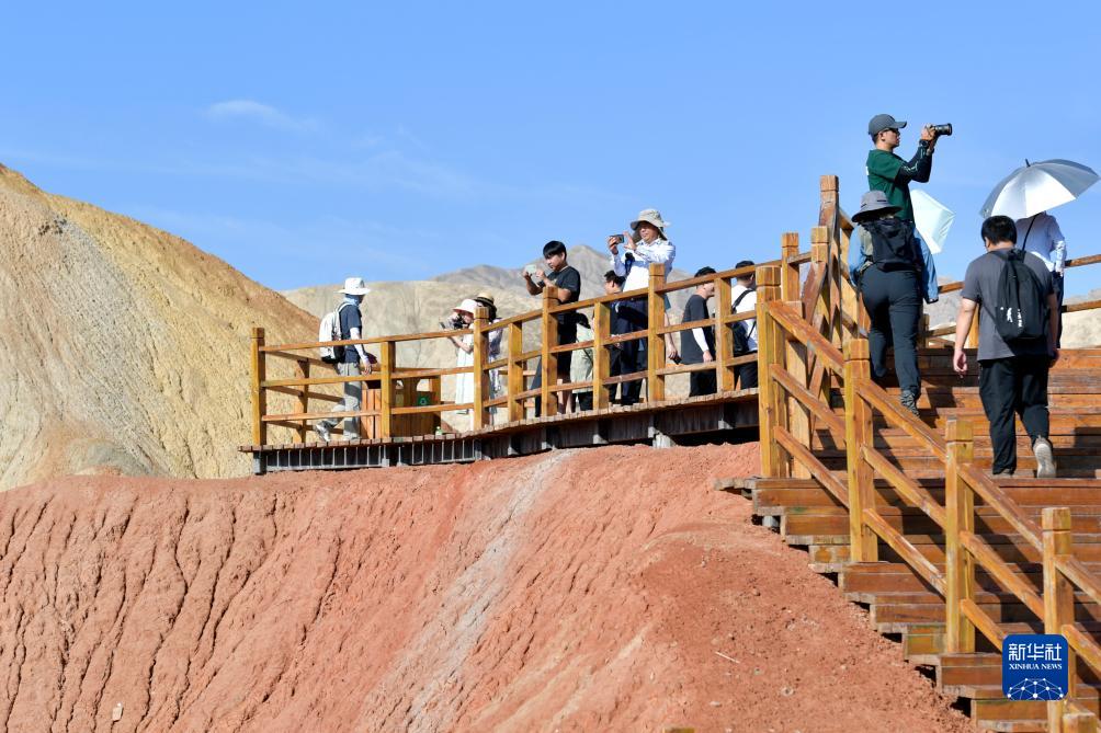 位于甘肃省张掖市境内的张掖七彩丹霞景区属张掖国家地质公园,是罕见的丹霞地貌与彩色丘陵景观复合区。进入8月以来,七彩丹霞景区日均游客数量突破3.5万人次。