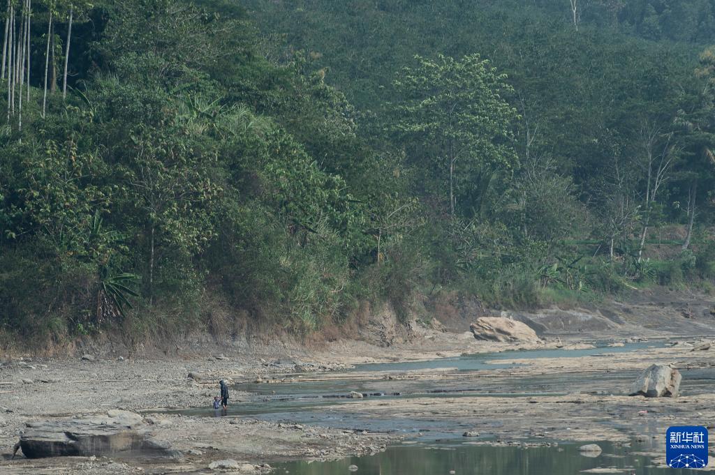 8月7日,在印度尼西亚西爪哇省的茂物,乡间一条河流的水量大为减少几近干涸。