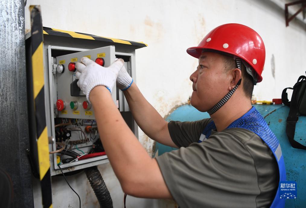 8月8日,工作人员在涿州市城区地表水厂设备间抢修受损设备。