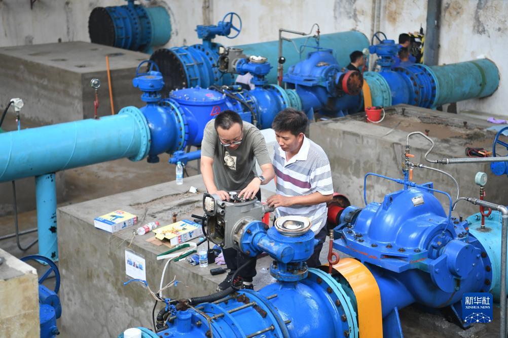 8月8日,工作人员在涿州市城区地表水厂设备间抢修受损设备。