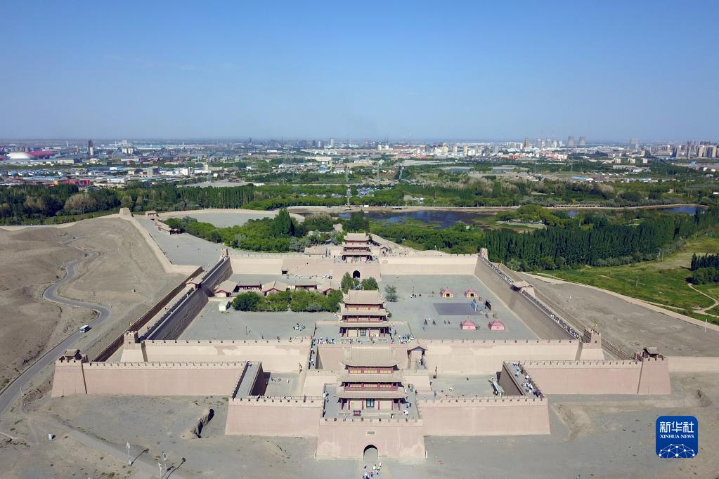 这是8月7日拍摄的嘉峪关关城(无人机照片)。