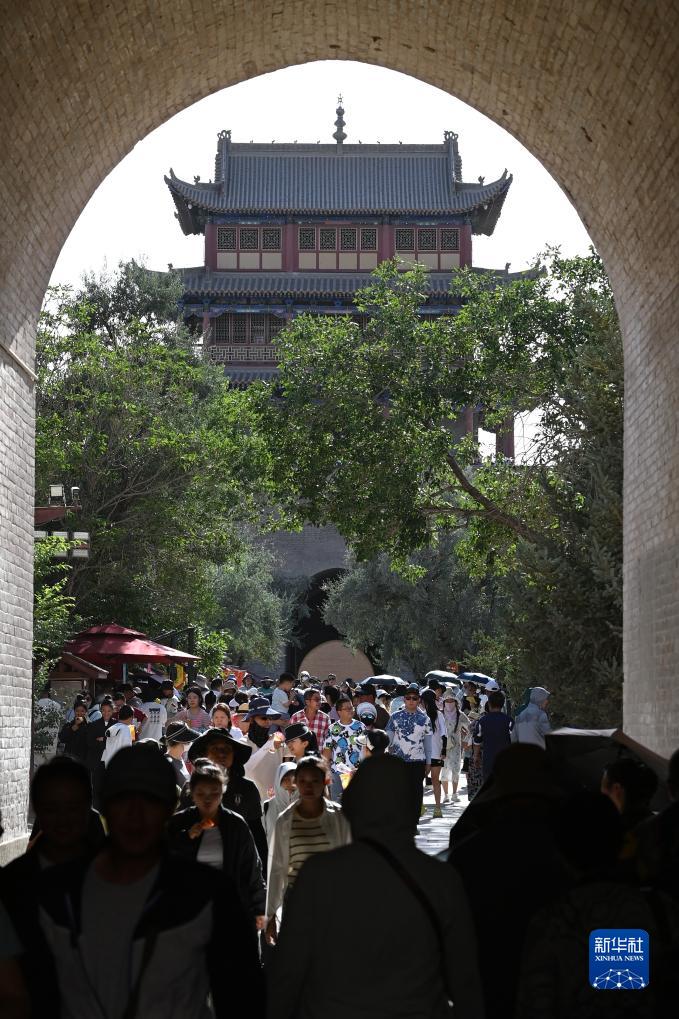 8月7日,游客在嘉峪关关城参观游览。