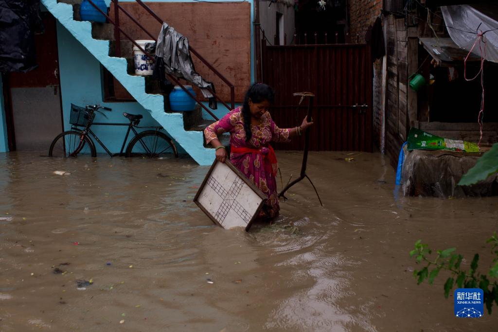 受降雨影响,尼泊尔加德满都多处区域遭遇洪涝灾害。