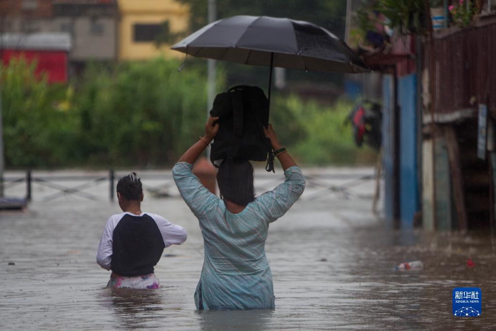 受降雨影响,尼泊尔加德满都多处区域遭遇洪涝灾害。