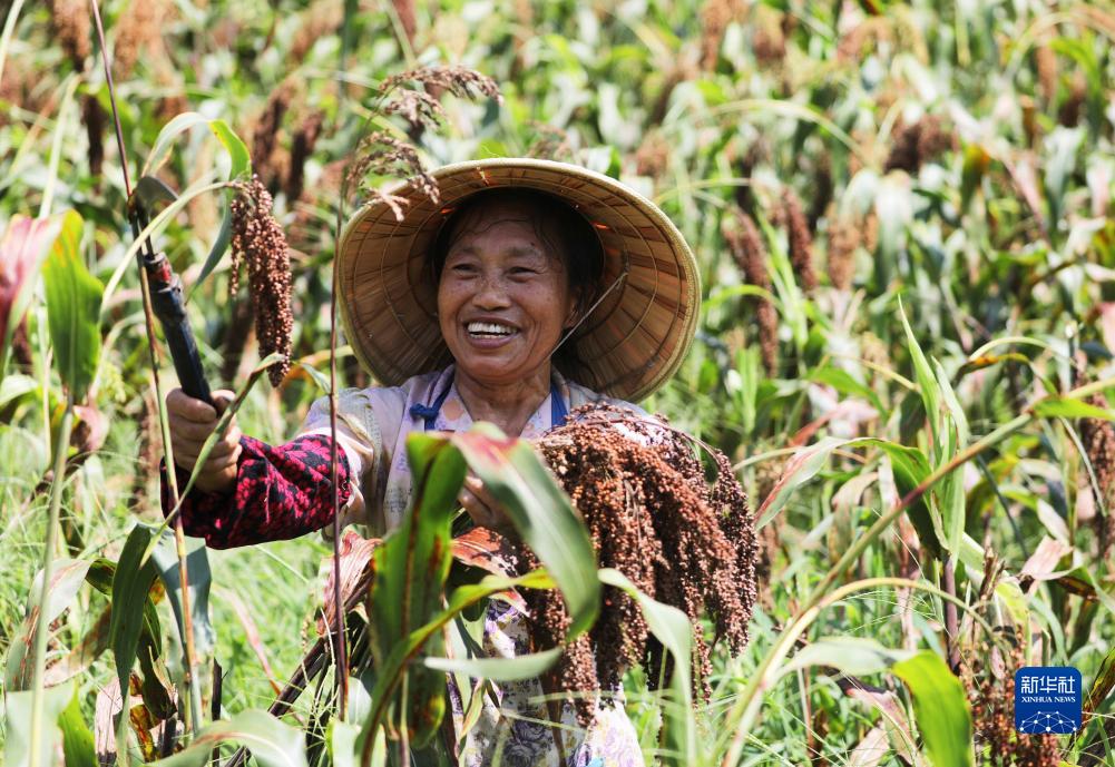 近日,贵州省赤水市种植的高粱喜获丰收,村民们抢抓晴好天气忙着采收、晾晒高粱。近年来,赤水市积极调整农业产业结构,驻村党员干部引导农民种植酿酒高粱,采取“党支部+合作社+农户”模式,统一提供种子、有机肥和种植技术,实行订单保底价格收购,促进农业增效、农民增收,助力乡村振兴。