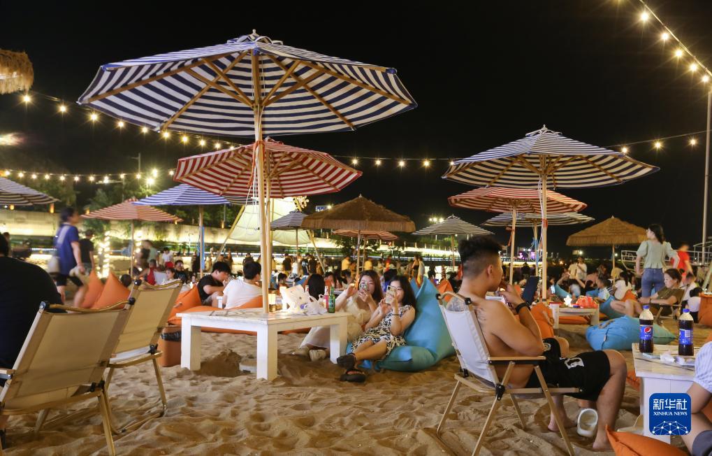 8月5日晚,江苏省连云港市在海一方公园热闹非凡,夜间消费火爆。