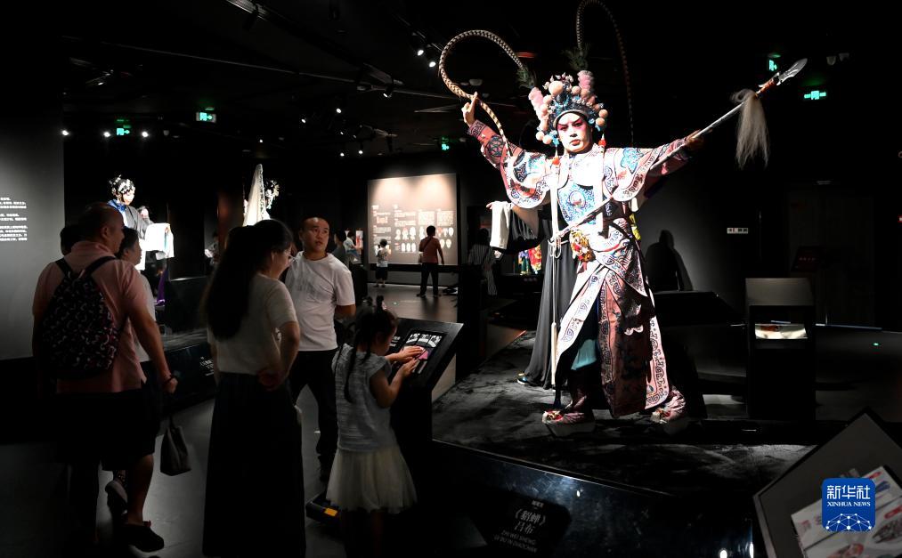 参观者在中国秦腔艺术博物馆里观展(8月8日摄)。