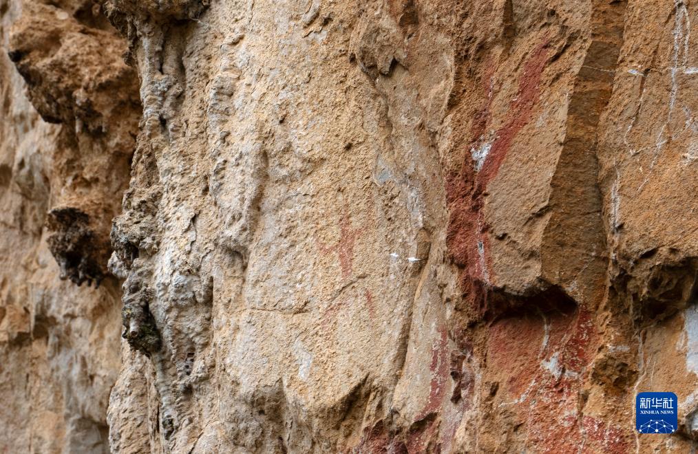 岩画局部,这是目前花山岩画中发现的最小的人像,仅有20厘米左右(8月8日摄)。
