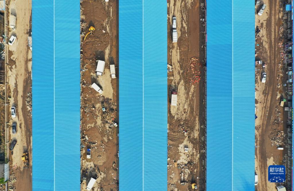 这是洪水退去后的涿州新发地大石桥农副产品批发市场(8月9日摄,无人机照片)。
