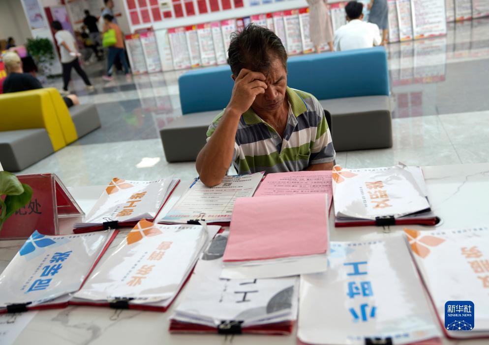 8月9日,一名求职者在浙江省金华市婺城区零工服务中心内查看用工信息。