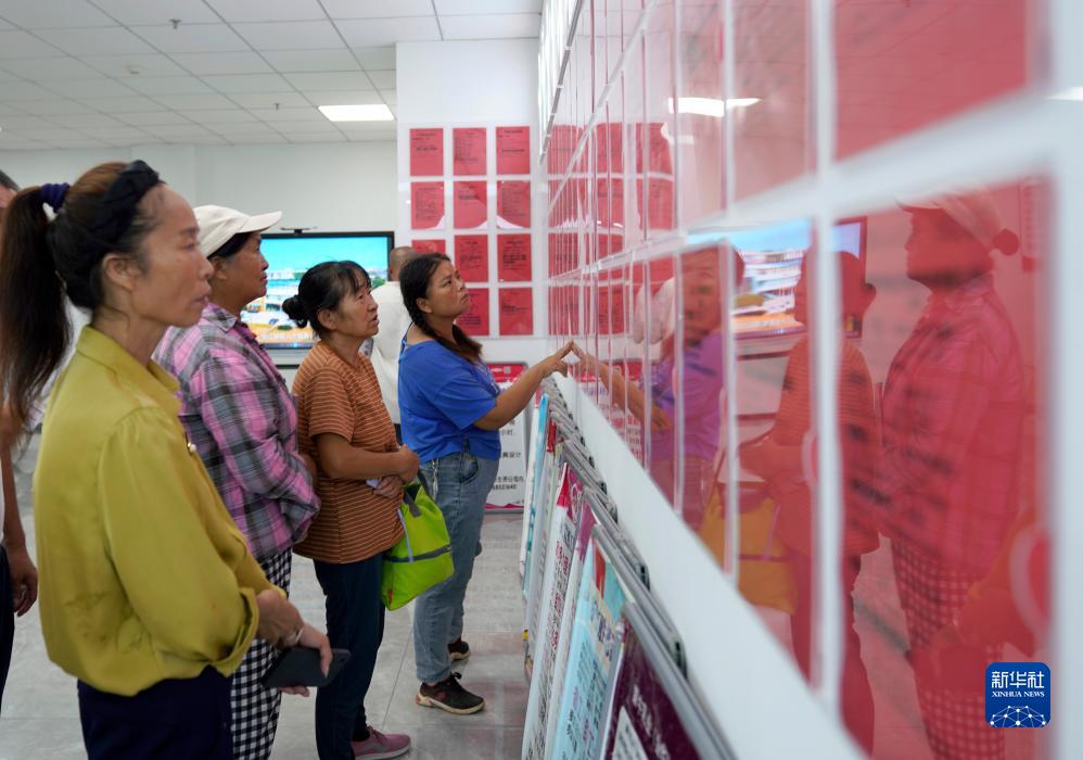 8月9日,求职者在浙江省金华市婺城区零工服务中心内查看用工信息。