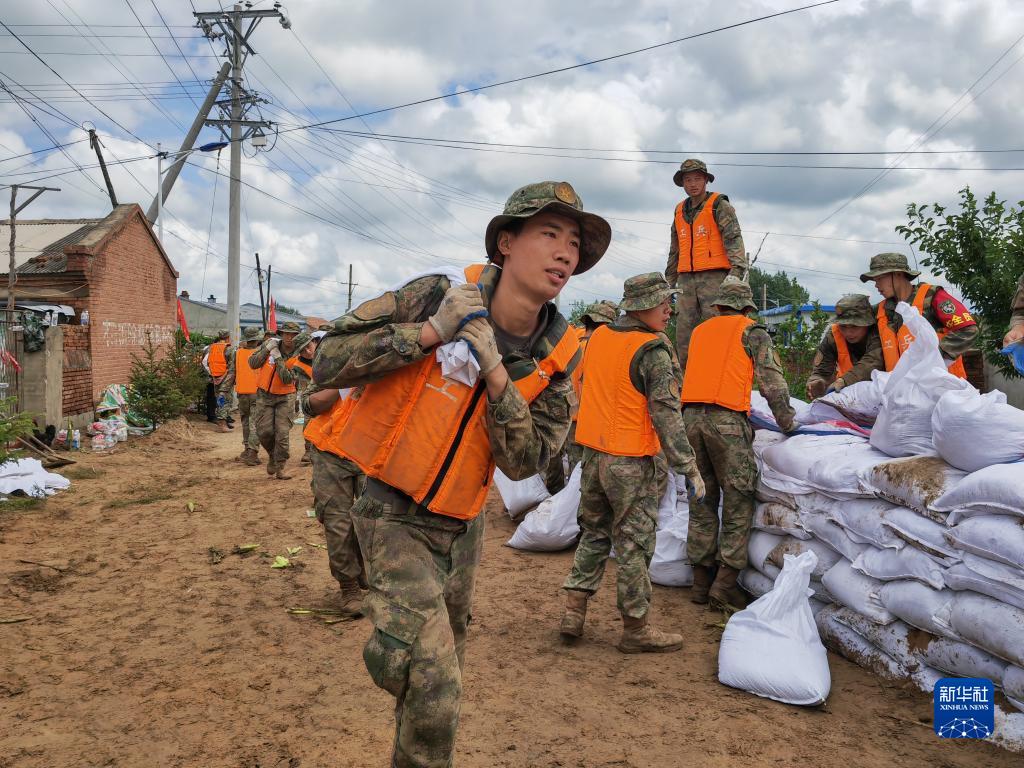装满沙袋,扛上肩头,疾速前进……一名名年轻官兵身穿迷彩服和救生衣,将一个个白色沙袋筑成一道长约两公里的“白色长城”。8日正午时分,在黑龙江省哈尔滨市双城区万隆乡增产村,来自陆军第78集团军某旅的800余名官兵奋战在抗洪一线。