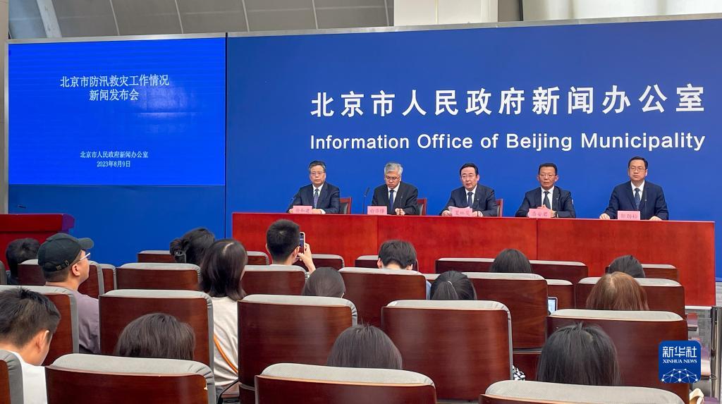 8月9日拍摄的北京市防汛救灾工作情况新闻发布会现场。