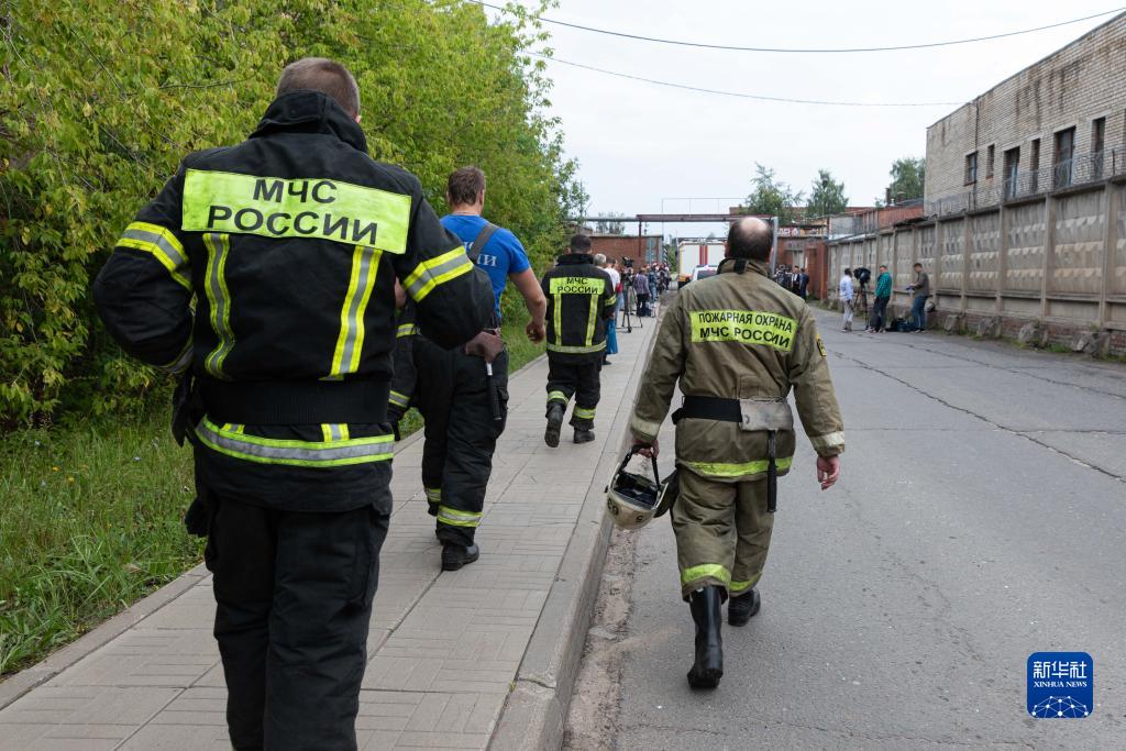 8月9日,在俄罗斯莫斯科州,救援人员抵达事发工厂。新华社记者 白雪骐 摄