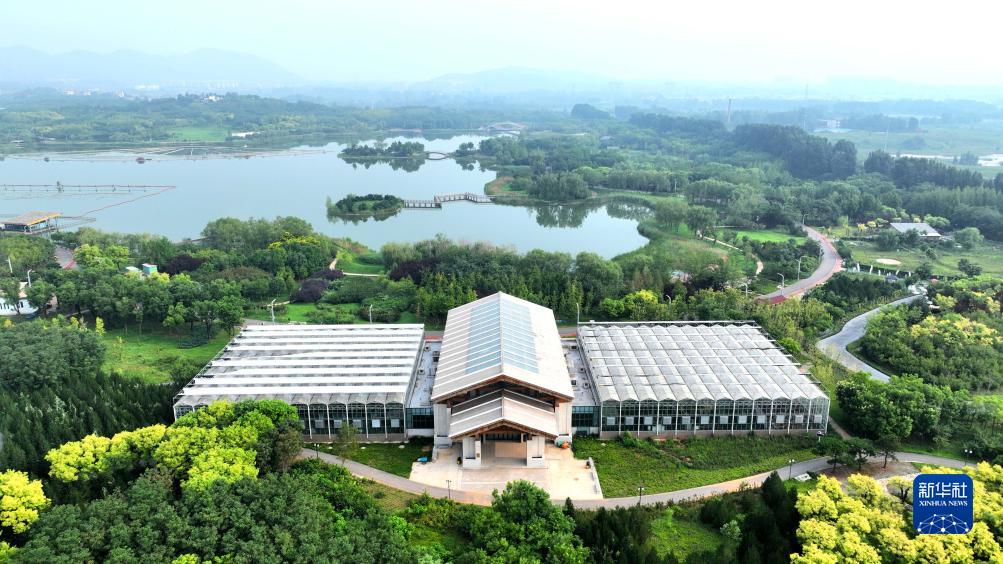 8月9日拍摄的位于河北省石家庄市鹿泉区龙泉湖公园内的一处公园书房(无人机照片)。