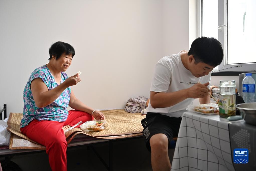 8月9日,转移群众在亲和儒园安置点内吃饭。