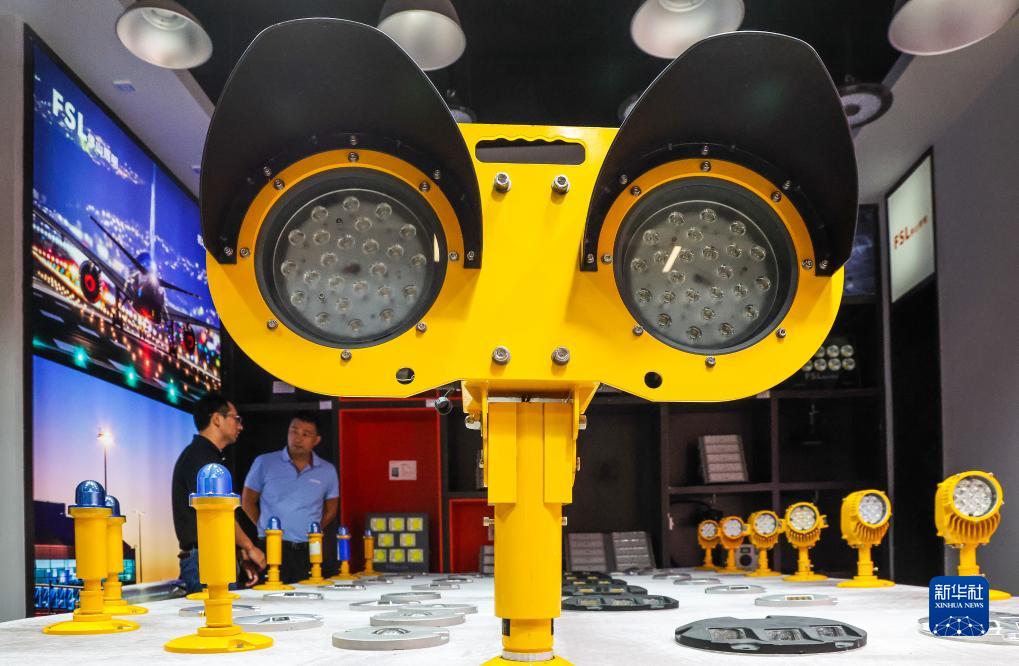 这是佛山照明产品展厅内展示的机场跑道照明设备(8月8日摄)。