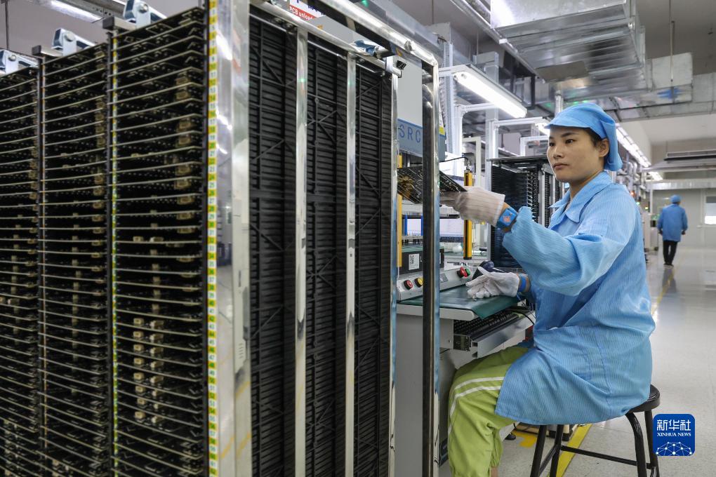 质检员在佛山照明高明生产基地的车灯生产车间检测产品(8月9日摄)。