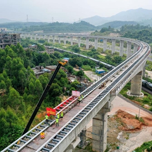 当日,中铁十一局建设者将最后一榀10米磁浮轨排稳稳铺设在长隆特大桥上,标志着广东首条中低速磁浮线——清远磁浮旅游专线实现轨道贯通。