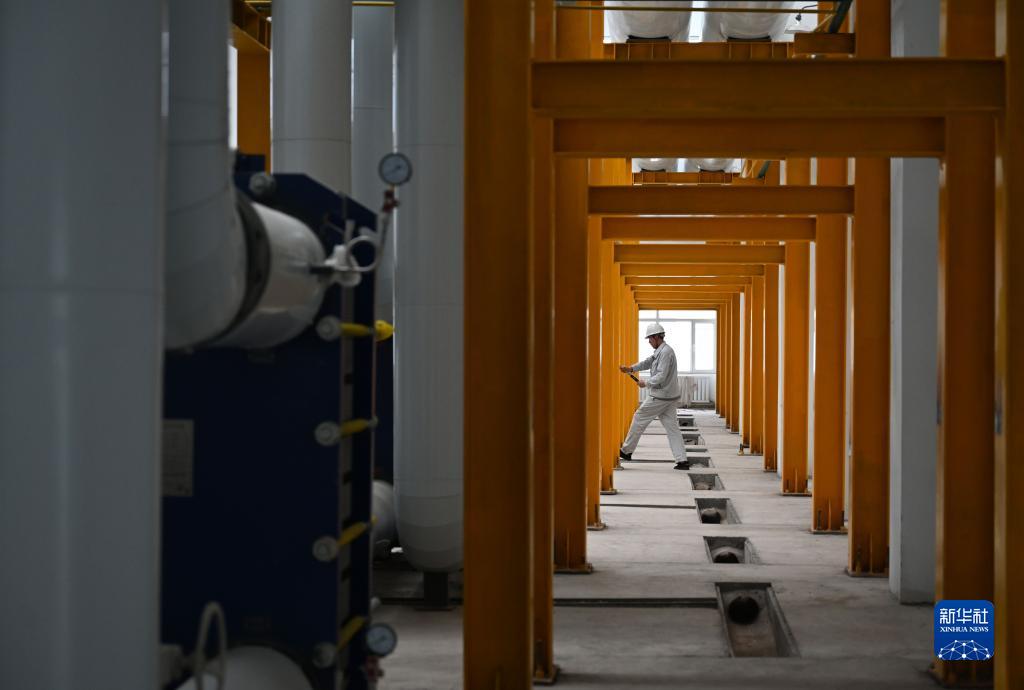 8月10日,工人在中国能建承建的张掖经开区零碳热源厂施工。