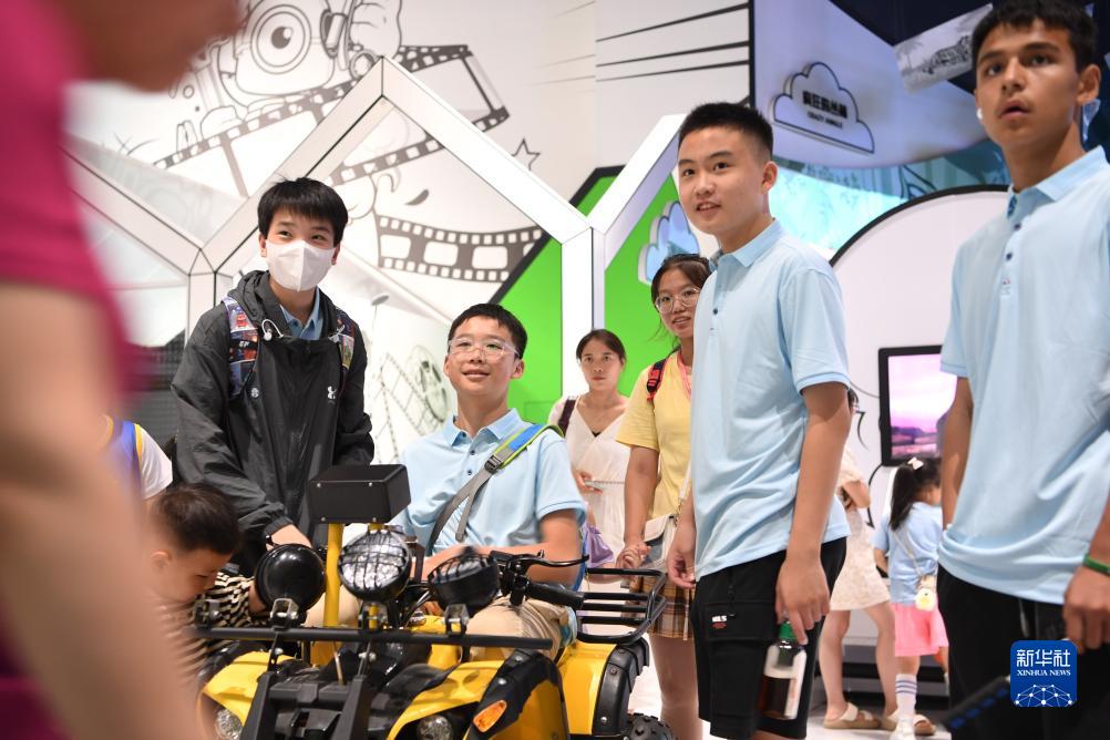 8月10日,夏令营学生在河南省科技馆新馆参观体验。
