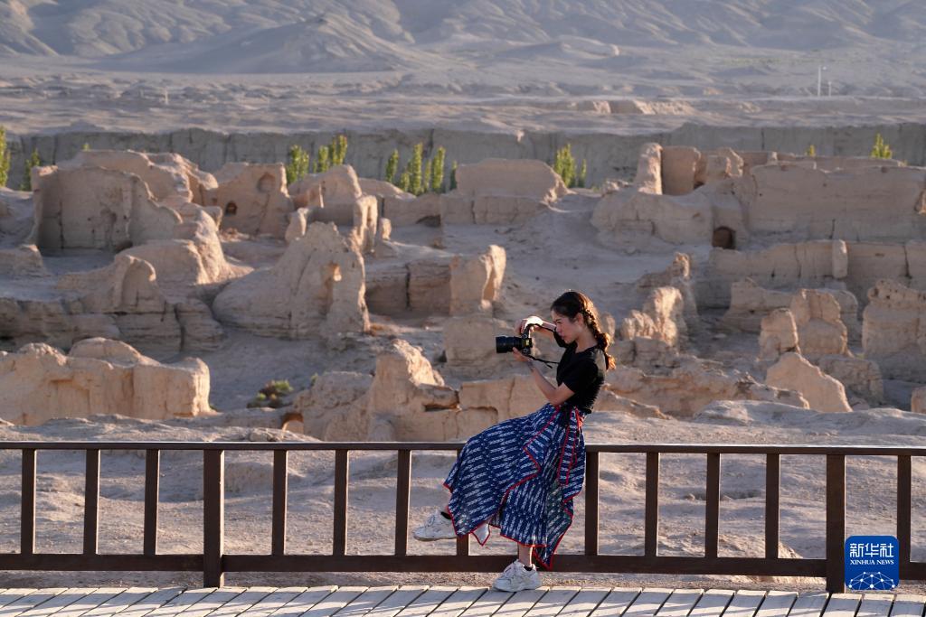 8月11日,游客在交河故城拍照。