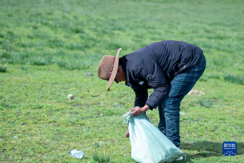 8月11日,次扎达在转换牧场时捡拾生活垃圾。