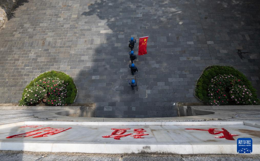 8月10日,“国旗巡线班”来到友谊关附近巡视线路和设备。新华社记者 费茂华 摄
